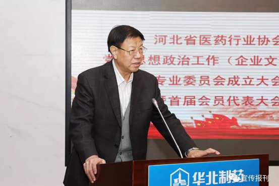 1月15日,河北省醫藥行業黨建思想政治工作(企業文化建設)專業委員會成立大會暨首屆會員代表大會在華北制藥召開。