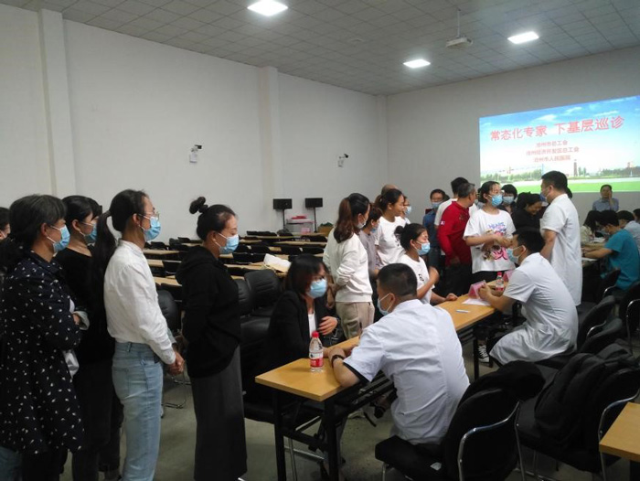 活動開始,滄州市總工會田瑩副科長發表講話,她指出,滄州市總工會通過建設“職工健康生活室”,聯合滄州市人民醫院定期下基層開展健康大課堂、義診等活動,為職工送去科學的營養保健指導,對患病的職工提出相應的治療建議,既滿足了職工健康的新需求,又使之成為了關心關愛職工健康的新舉措。她強調“常態化專家下基層巡診”活動將會持續搞下去,讓職工參與度更高,惠及更多的職工。