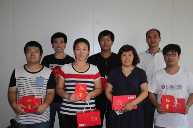 2016年8月11日,由公司副總經(jīng)理王顥為獲得7月份優(yōu)秀員工稱號(hào)的人員進(jìn)行頒獎(jiǎng)。本期優(yōu)秀員工為:冷振環(huán)、楊香、王炳芬、武明會(huì)、馬洪林、劉樹立、張帥。