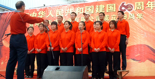 2009年9月29日是我公司建廠39周年改制11周年的日子,又恰逢新中國成立60周年,和著全國人民大慶的節拍,我公司于2009年9月30日舉行了隆重的慶典活動。大會由公司副總王顥主持,公司副總田長友在會上做了2009年1-9月份工作匯報,副總徐福河宣讀了2009年度工資調整方案,之后公司董事長兼總經理王振剛做了關于企業文化的重要報告。領導講話結束后,舉行了“唱紅歌”大合唱歌詠比賽,全公司共有十九個代表隊參加了比賽。最后,在全體干部員工“歌唱祖國”的歌聲中,慶典活動圓滿結束。該活動極大地振奮了干部員工的精神,弘揚了企業文化,為公司今后的發展指明了方向。